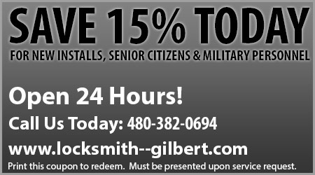 Whether you lost your keys or locked out of your car, call Locksmith Gilbert for all your locksmiths services in Gilbert, Arizona. Call us now at 480-382-0694 and recieve 15% off a new locks installation by the number professional locksmiths.